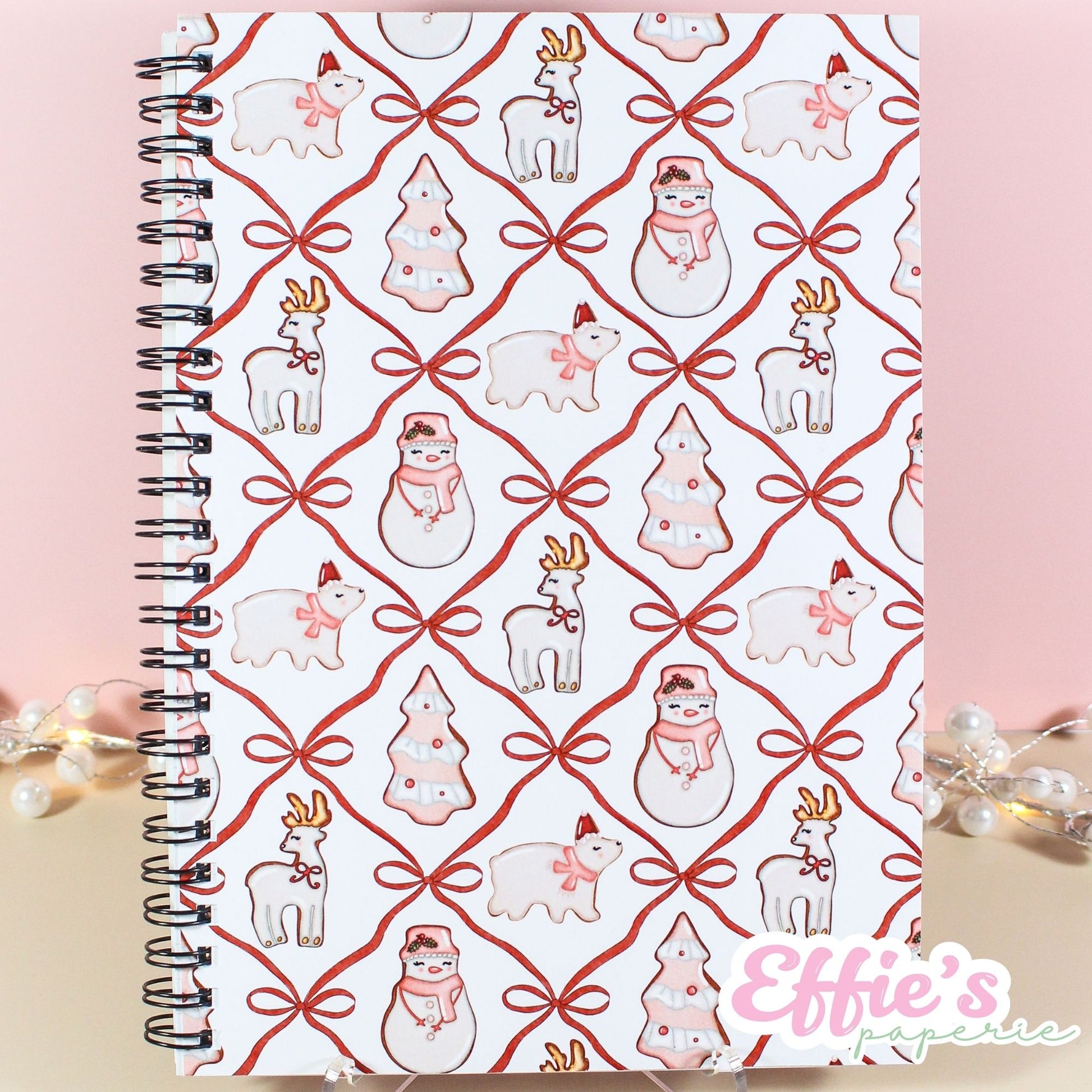 Celebrate the sweetest season with this Whimsical Christmas Cookie Spiral Notebook. 🍪🎀 Featuring hand-drawn watercolor illustrations of reindeer, snowmen, polar bears, and Christmas trees—all tied together with dainty bows—this festive notebook brings cozy holiday cheer to your journaling routine. With smooth lined pages and a practical spiral binding, it’s perfect for jotting down to-do lists, creative ideas, or holiday memories. A must-have for stationery lovers who adore whimsical design and soft, cottage-core aesthetics.